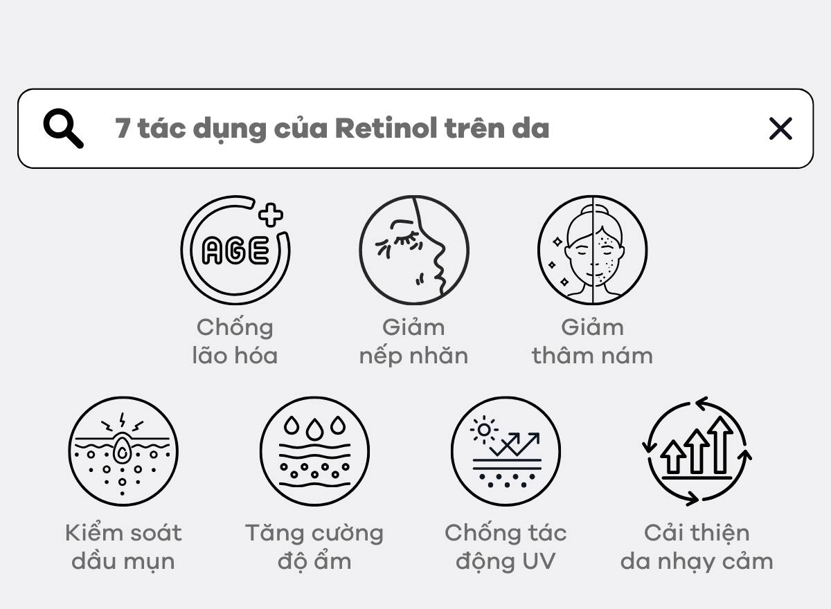 Retinol, hay còn gọi là Vitamin A dạng tự nhiên, là thành phần vàng trong điều trị lão hóa, giúp làm mờ nếp nhăn, thúc đẩy tái tạo tế bào và cải thiện kết cấu da. Các công dụng chính của Retinol bao gồm: