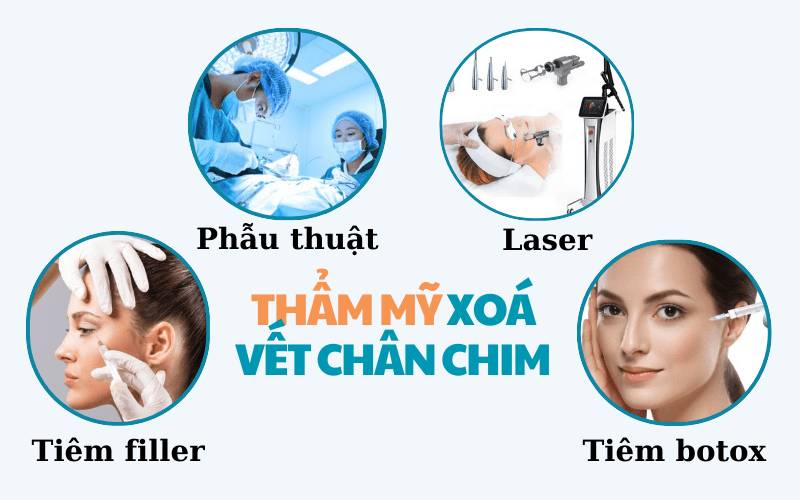 - Laser fractional hoặc laser CO2 giúp kích thích sản sinh collagen mới, làm mờ vết chân chim trên mặt.