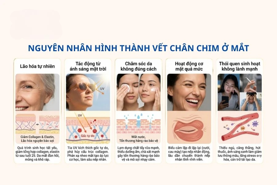 Nguyên nhân gây ra vết chân chim quanh mắt