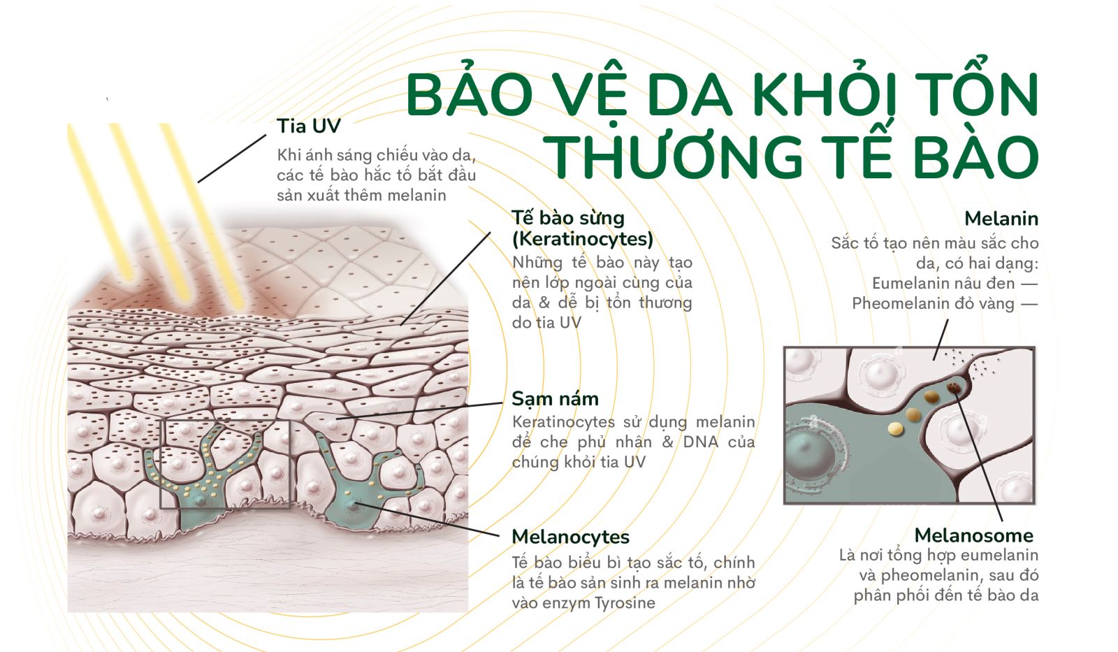 Khi da tiếp xúc với tia UV, nó sẽ phản ứng bằng cách sản xuất melanin để bảo vệ cơ thể khỏi tác động của bức xạ. Tuy nhiên, trong một số trường hợp, sự sản xuất melanin quá mức có thể dẫn đến tình trạng tăng sắc tố da. Điều này thường xảy ra dưới dạng các đốm nâu, nám hoặc tàn nhang. Tình trạng này không chỉ ảnh hưởng đến vẻ bề ngoài mà còn có thể khiến mọi người cảm thấy tự ti.